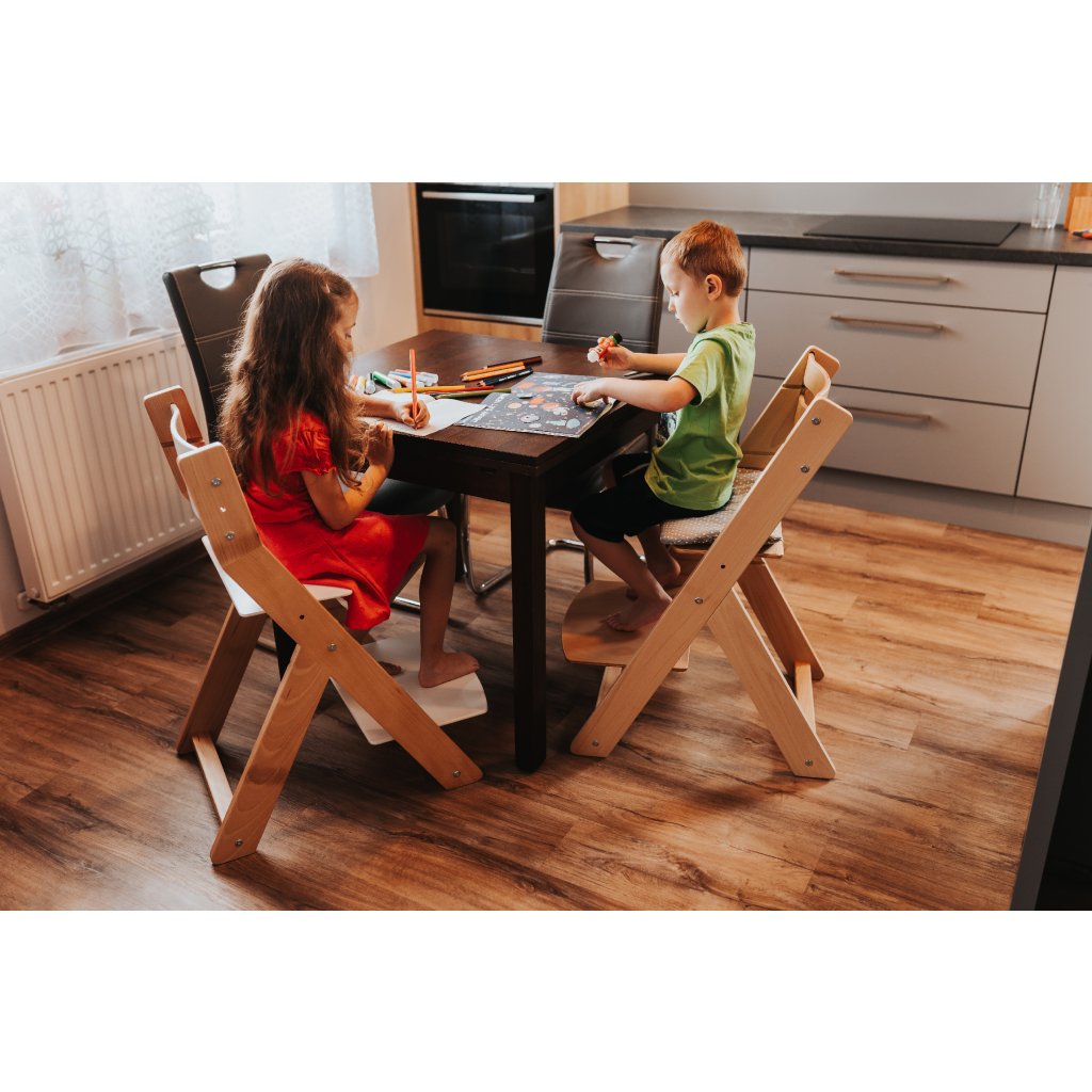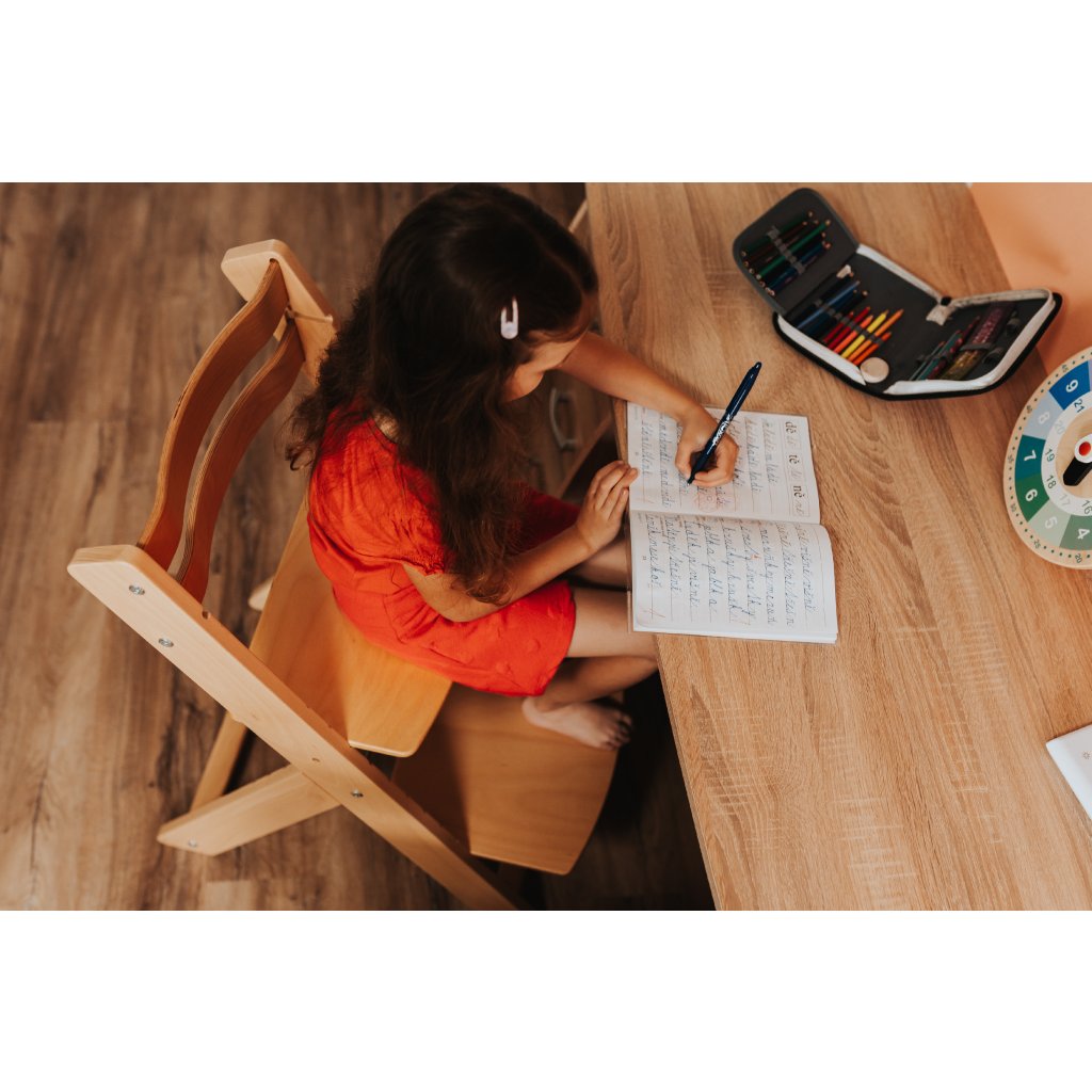 Židle posedo není sériovka z pásu. Každý kus vzniká v naší české dílně, kde ruce zkušených řemeslníků dbají na každý detail – od precizního tvarování po finální povrch. Používáme odolné, zdravotně nezávadné materiály, které něco vydrží a snadno se čistí. Rovný sedák pomáhá udržet přirozené držení těla a podporuje zdravou pozici páteře při každodenním sezení u stolu. Nastavitelná výška sedáku i podnožky zajistí, že se dítěti židle vždy přizpůsobí – ne naopak. A když chcete, přidáme stoleček nebo na židli vygravírujeme jméno. Protože každé dítě je jedinečné.