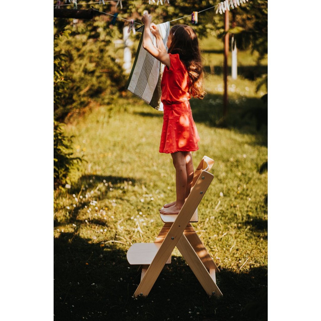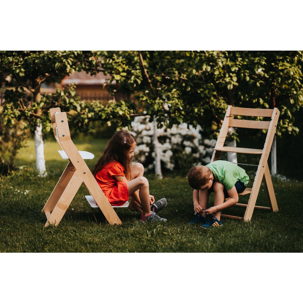 Židle posedo není sériovka z pásu. Každý kus vzniká v naší české dílně, kde ruce zkušených řemeslníků dbají na každý detail – od precizního tvarování po finální povrch. Používáme odolné, zdravotně nezávadné materiály, které něco vydrží a snadno se čistí. Rovný sedák pomáhá udržet přirozené držení těla a podporuje zdravou pozici páteře při každodenním sezení u stolu. Nastavitelná výška sedáku i podnožky zajistí, že se dítěti židle vždy přizpůsobí – ne naopak. A když chcete, přidáme stoleček nebo na židli vygravírujeme jméno. Protože každé dítě je jedinečné.