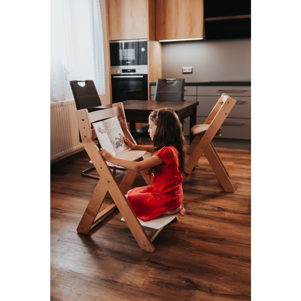 Židle posedo není sériovka z pásu. Každý kus vzniká v naší české dílně, kde ruce zkušených řemeslníků dbají na každý detail – od precizního tvarování po finální povrch. Používáme odolné, zdravotně nezávadné materiály, které něco vydrží a snadno se čistí. Rovný sedák pomáhá udržet přirozené držení těla a podporuje zdravou pozici páteře při každodenním sezení u stolu. Nastavitelná výška sedáku i podnožky zajistí, že se dítěti židle vždy přizpůsobí – ne naopak. A když chcete, přidáme stoleček nebo na židli vygravírujeme jméno. Protože každé dítě je jedinečné.