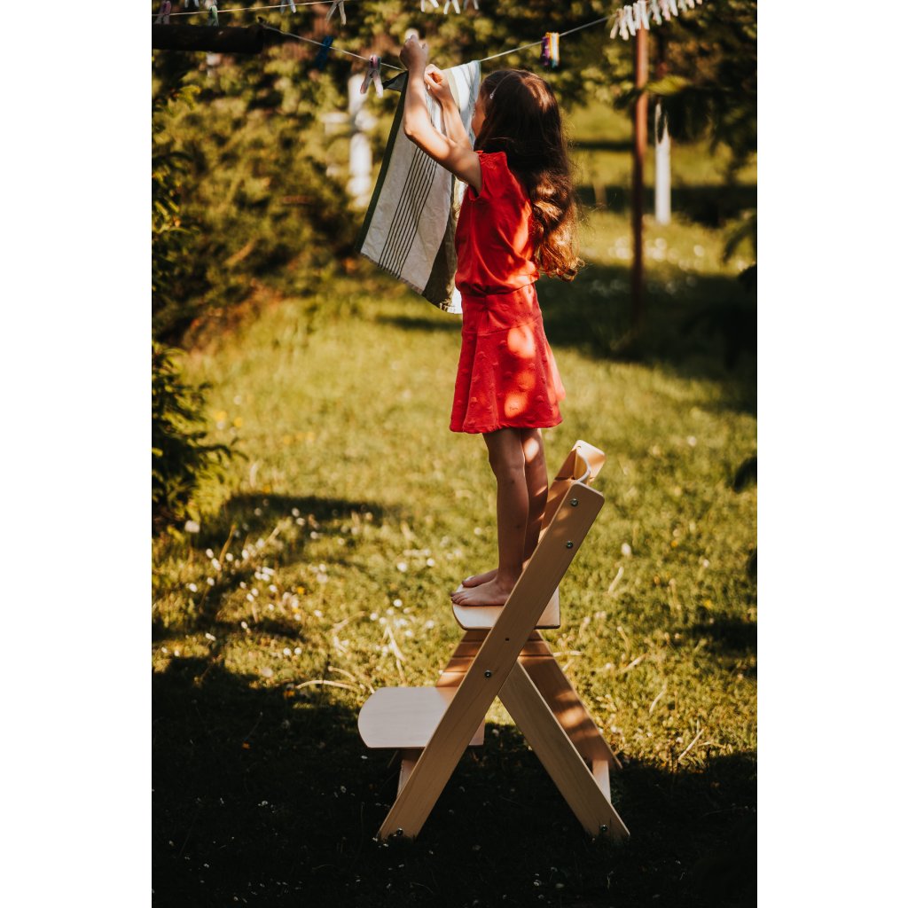 Židle posedo není sériovka z pásu. Každý kus vzniká v naší české dílně, kde ruce zkušených řemeslníků dbají na každý detail – od precizního tvarování po finální povrch. Používáme odolné, zdravotně nezávadné materiály, které něco vydrží a snadno se čistí. Patentovaný ergonomický sedák podporuje zdravé držení těla už od prvních samostatných sedů. Nastavitelná výška sedáku i podnožky zajistí, že se dítěti židle vždy přizpůsobí – ne naopak. A když chcete, přidáme stoleček nebo na židli vygravírujeme jméno. Protože každé dítě je jedinečné.