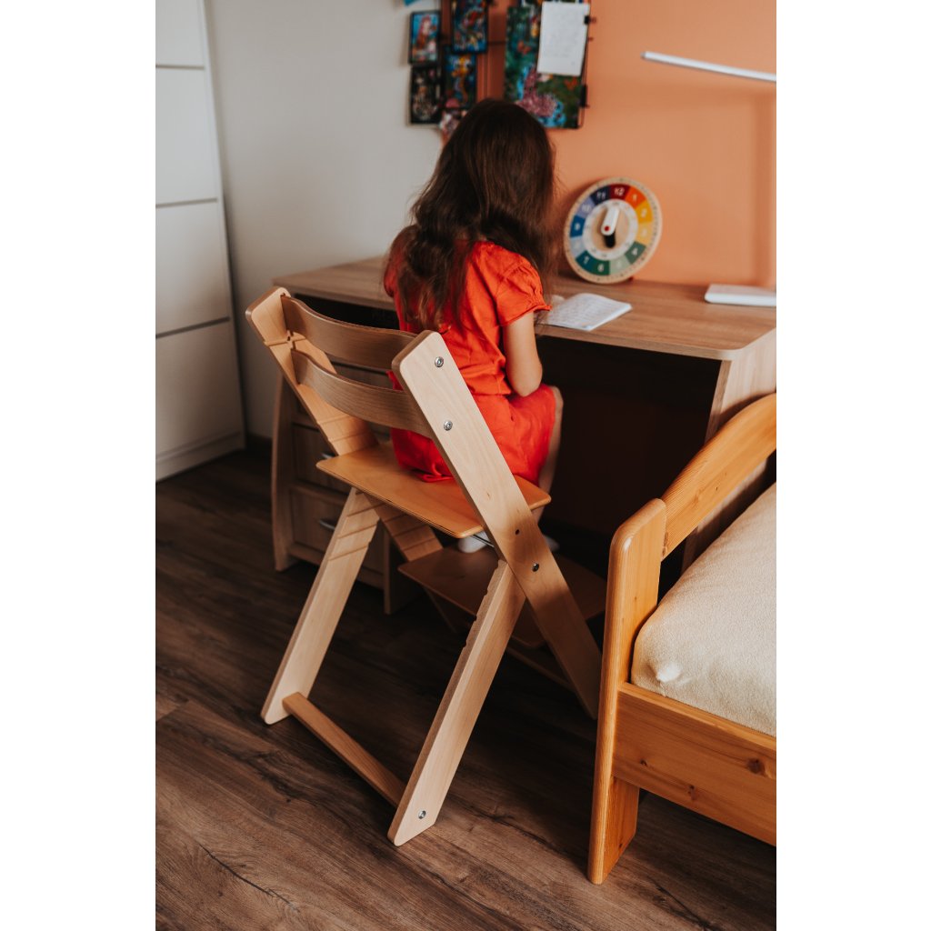 Židle posedo není sériovka z pásu. Každý kus vzniká v naší české dílně, kde ruce zkušených řemeslníků dbají na každý detail – od precizního tvarování po finální povrch. Používáme odolné, zdravotně nezávadné materiály, které něco vydrží a snadno se čistí. Patentovaný ergonomický sedák podporuje zdravé držení těla už od prvních samostatných sedů. Nastavitelná výška sedáku i podnožky zajistí, že se dítěti židle vždy přizpůsobí – ne naopak. A když chcete, přidáme stoleček nebo na židli vygravírujeme jméno. Protože každé dítě je jedinečné.